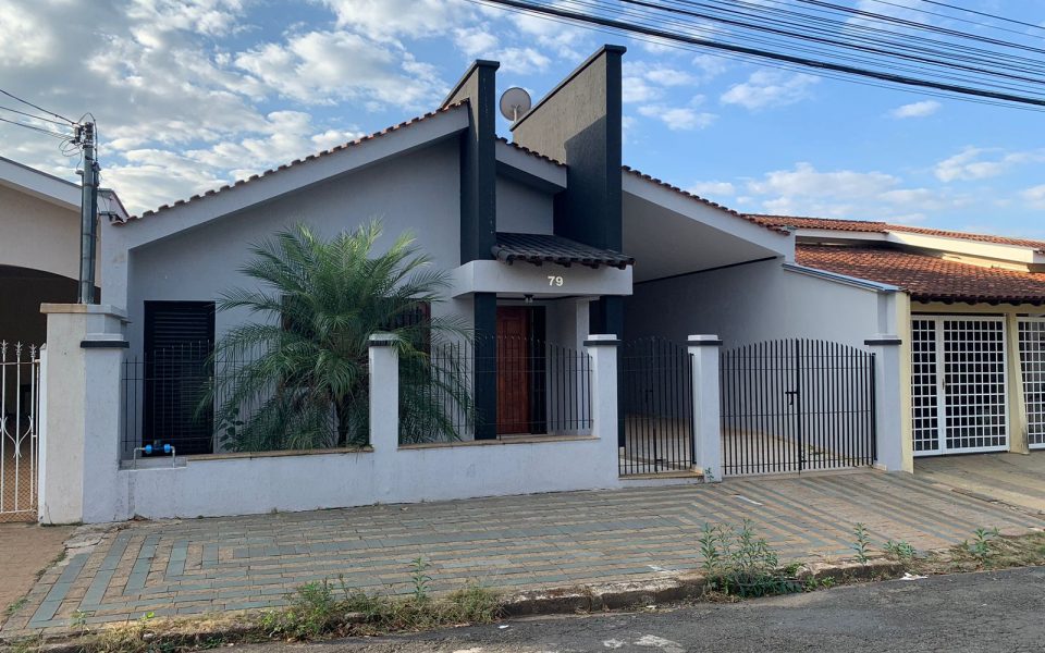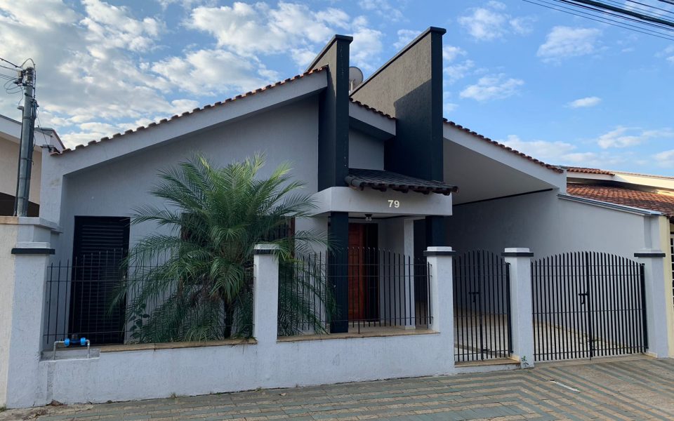 Imóvel residencial, em excelente localização, medindo 250 m² de área total e 210 m² de área construída, contendo quatro dormitórios com armários, sendo uma suíte, uma sala de estar, uma cozinha com móveis planejados, lavanderia com armários planejados, dois banheiros, área de lazer com churrasqueira e mais um quarto no piso inferior, garagem com vaga para dois carros.